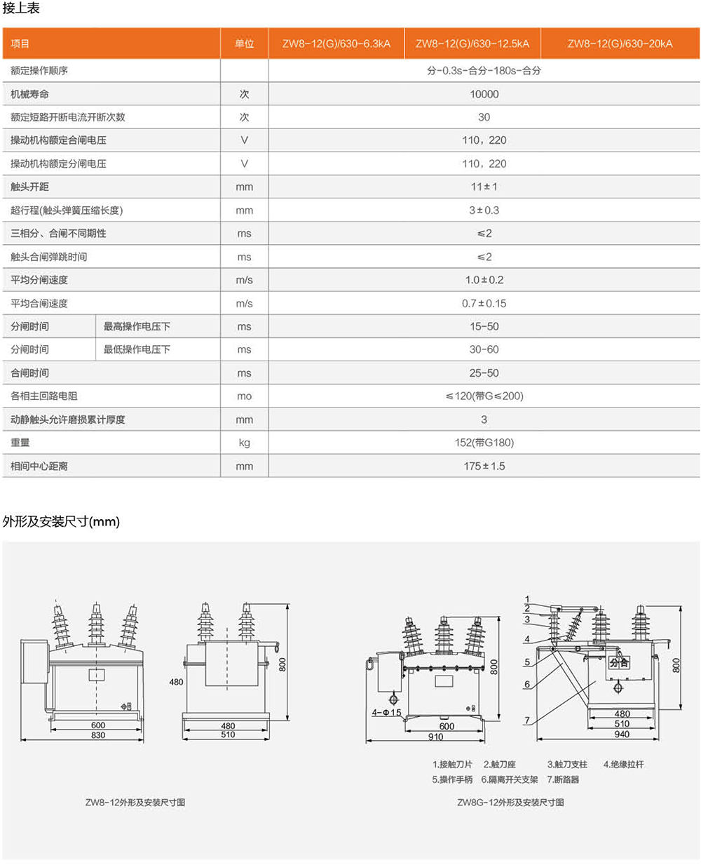 ZW8- 12(G)系列真空断路器为额定电压12kV,三相交流50Hz的高压户外开关设备,主要用来开断关合农网、城网和小型电力系统的负荷电流、过载电流、短路电流。该产品总体结构为三相共箱式,三相真空灭弧室置于金属箱内,利用SMC绝缘材料相间绝缘及对地绝缘,性能可靠,绝缘强度高。